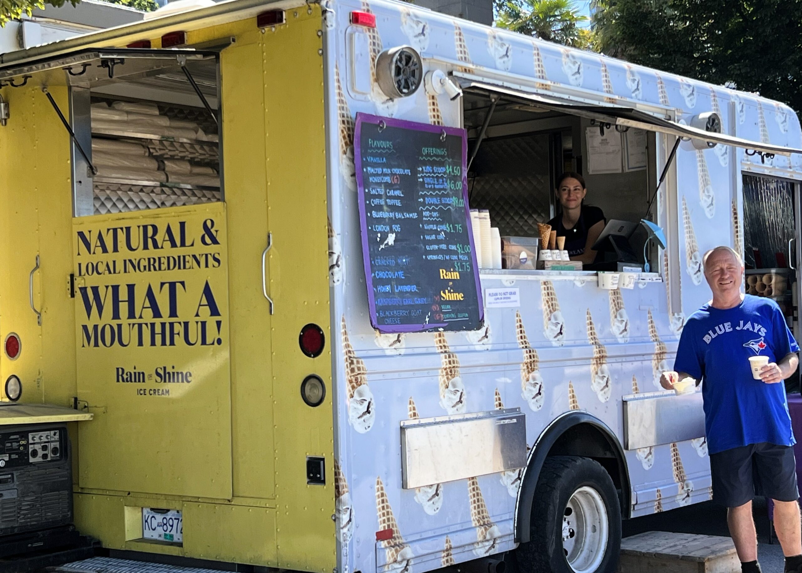 Once at Pacific Blvd, I bought a six pack for a stroll along English Bay’s beach front where the web gal suspiciously asked if it was ok to drink on the beach, which I assured her that after decades of stupid, anti- drinking laws, Vancouver has seen the light and allows light beer and wine consumption on its beaches now. Note to all state and municipal authorities, if you allow light booze consumption in your parks and beaches, like Europe has done sensibly for the last century, they won’t turn into drunken, marauding, fight fests. In fact, people will be appreciative, not having to hide their booze, which they are consuming anyway. Web gal bought some tasty Honey Lavender ice cream from Rain or Shine Ice Cream truck and had a nice, relaxing time on the beach. We welcome any invites for next year’s b-day!! Cheers!